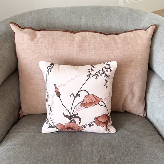 Poppy Floral Print Cushion Upcycled Scarf Throw Pillow 10"