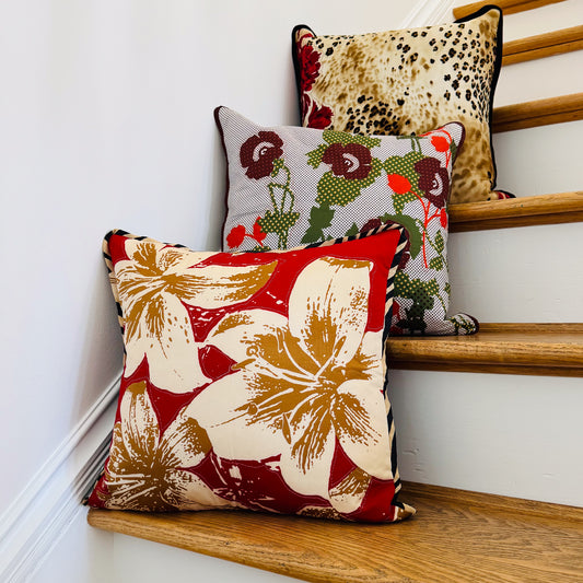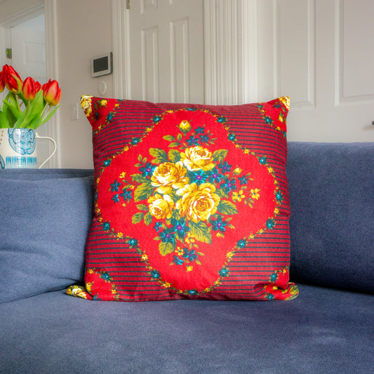 Tulip Floral Print Cushion Upcycled Scarf Throw Pillow 18”
