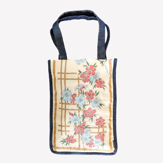 Vintage Scarf Bag Pink Blue Floral Print | Sustainable Upcycled Fabric Book Bag