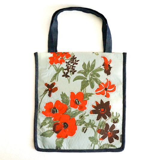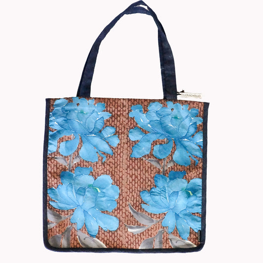 Vintage Scarf Tote Blue Floral Print | Sustainable Upcycled Fabric Market Bag
