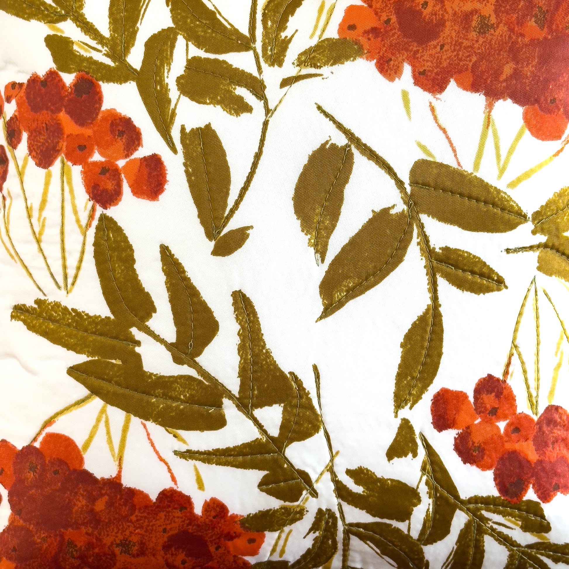 Transform your living space with this unique botanical pillow cover featuring a stunning berry print design crafted from an upcycled vintage scarf and recycled polyester fabric. This decorative cushion combines farmhouse charm with sustainable home decor, showcasing beautiful quilted details and a textile pattern that makes it the perfect accent piece for any room.
