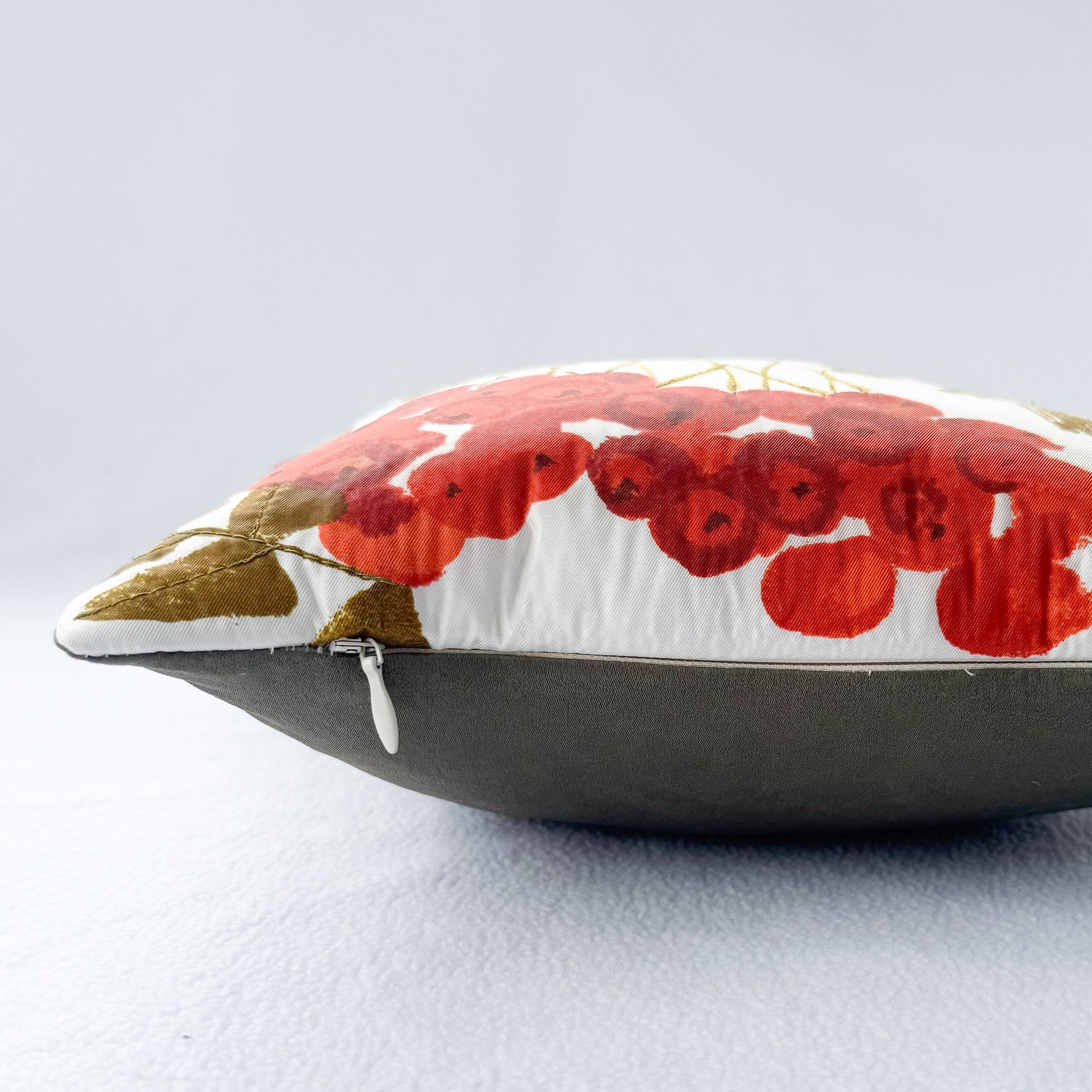 Cherry Floral Throw Pillow 12": Upcycled Scarf Design Quilted Accent Cushion