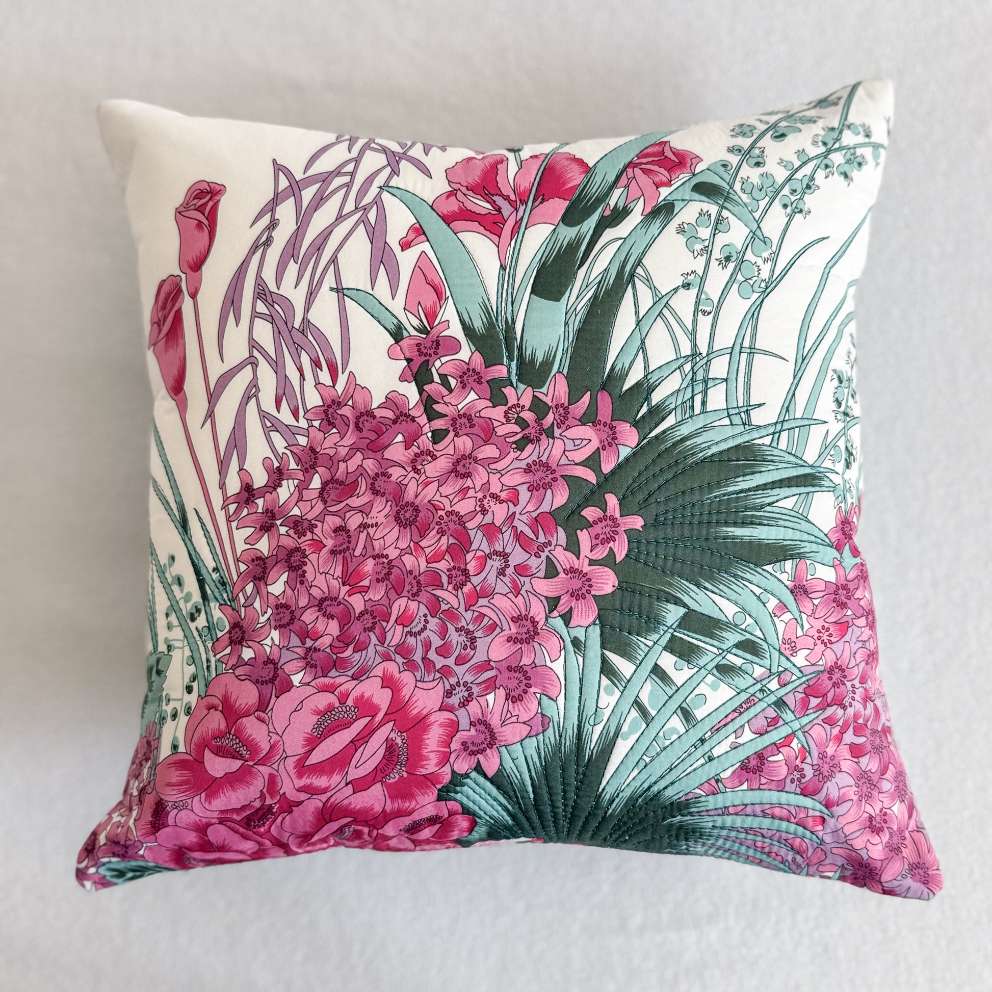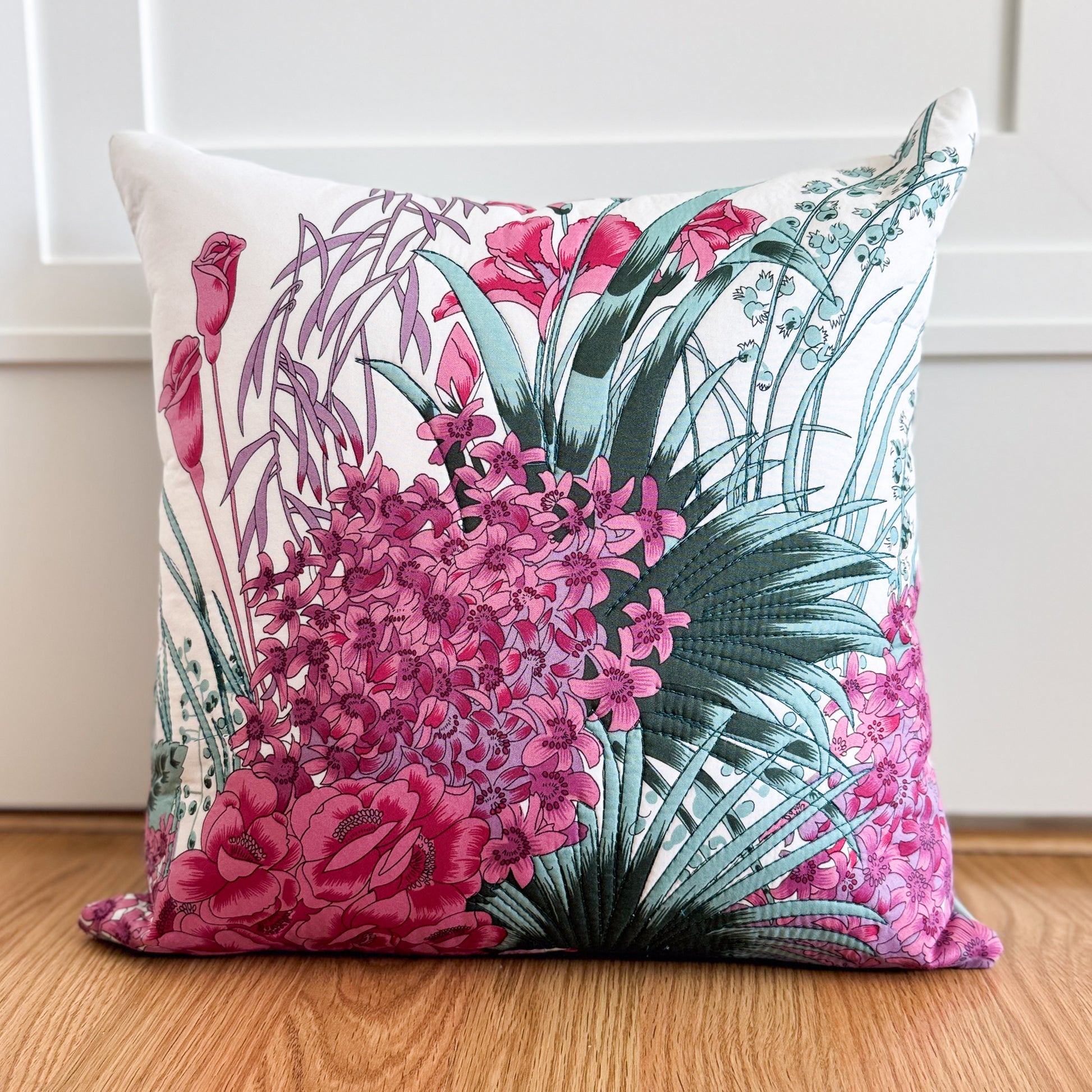 Flower Print Cushion Upcycled Scarf Throw Pillow 16"