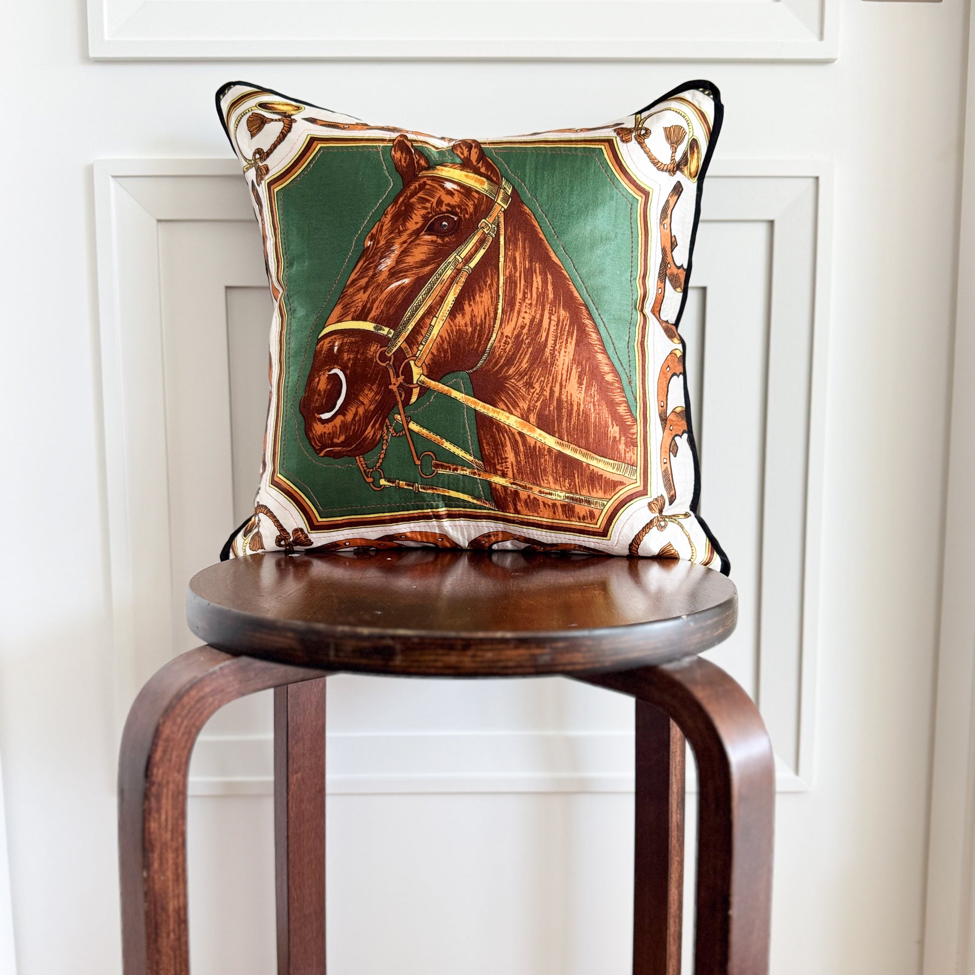 Horse Print Cushion Upcycled Scarf Throw Pillow 16"