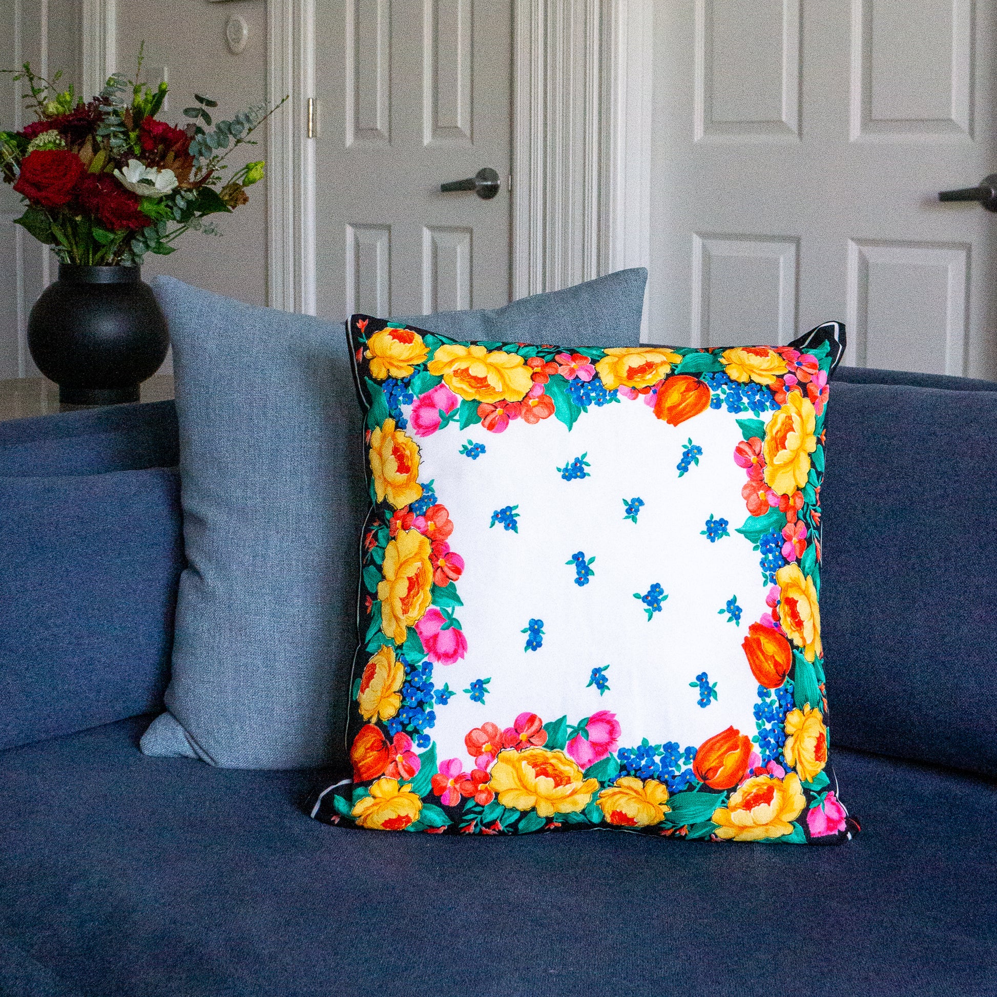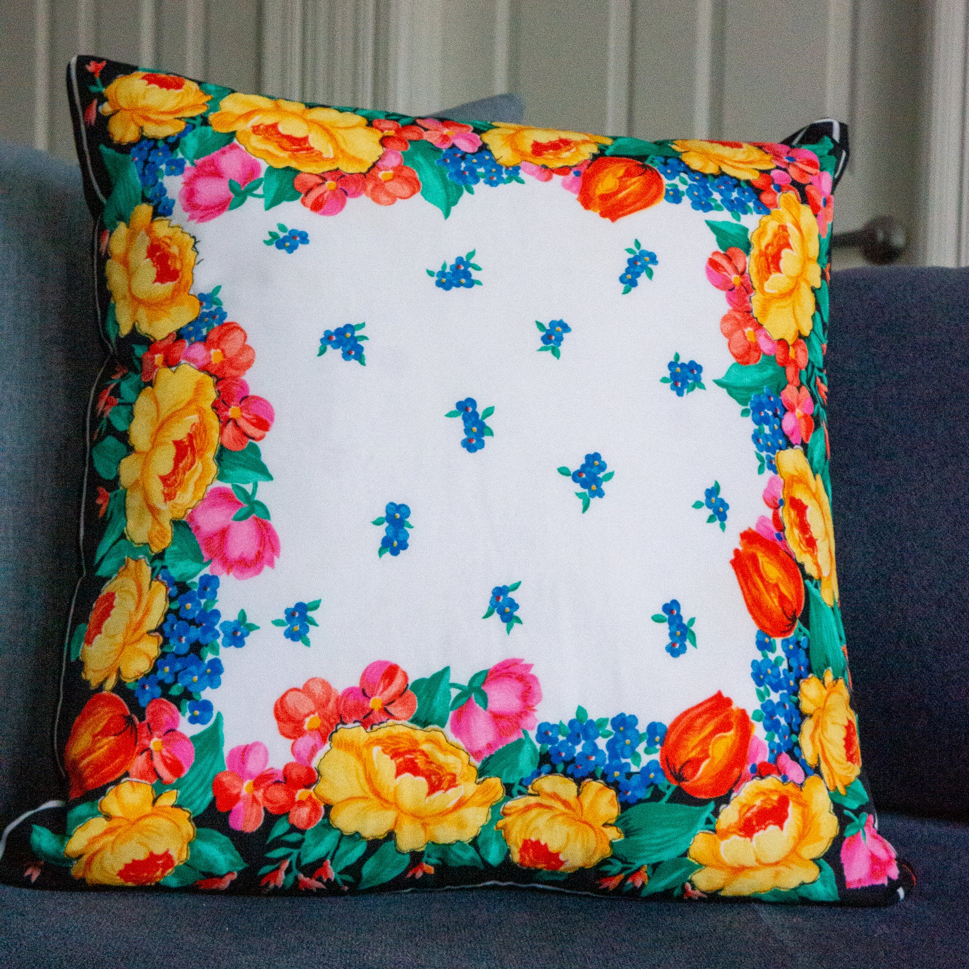 Tulip Floral Print Cushion Upcycled Scarf Throw Pillow 18”