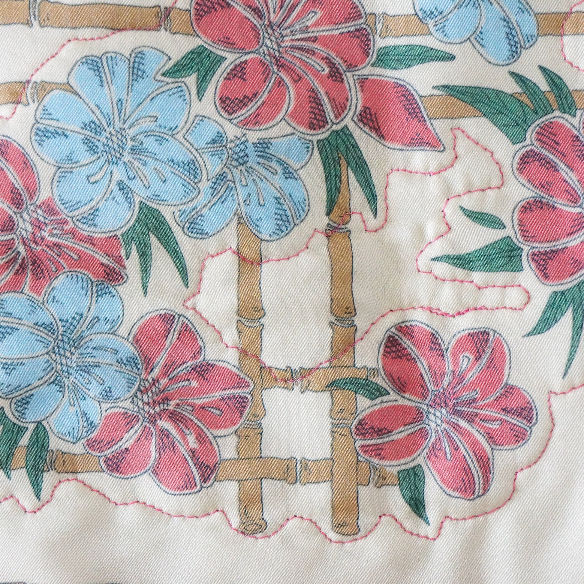 * Crafted from an upcycled vintage polyester scarf with tropical pink and blue floral print