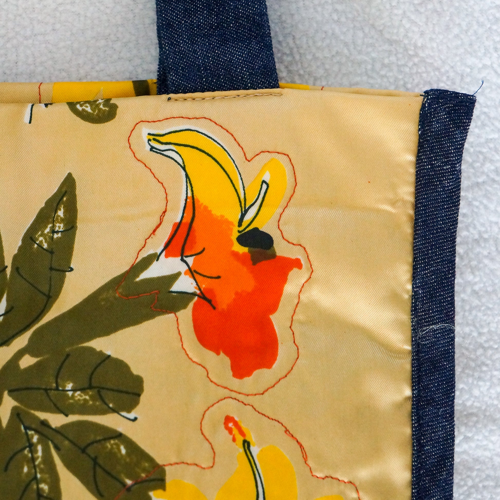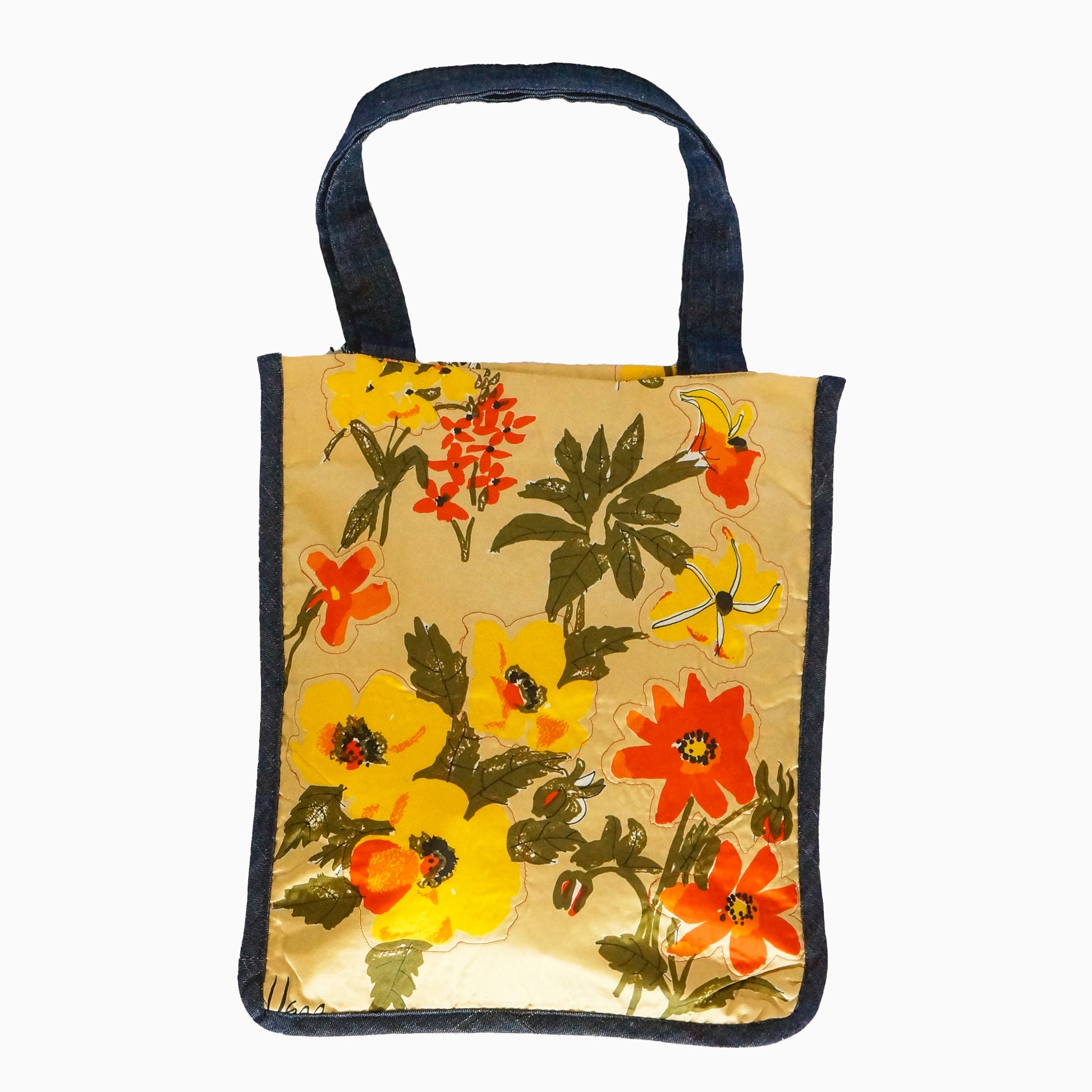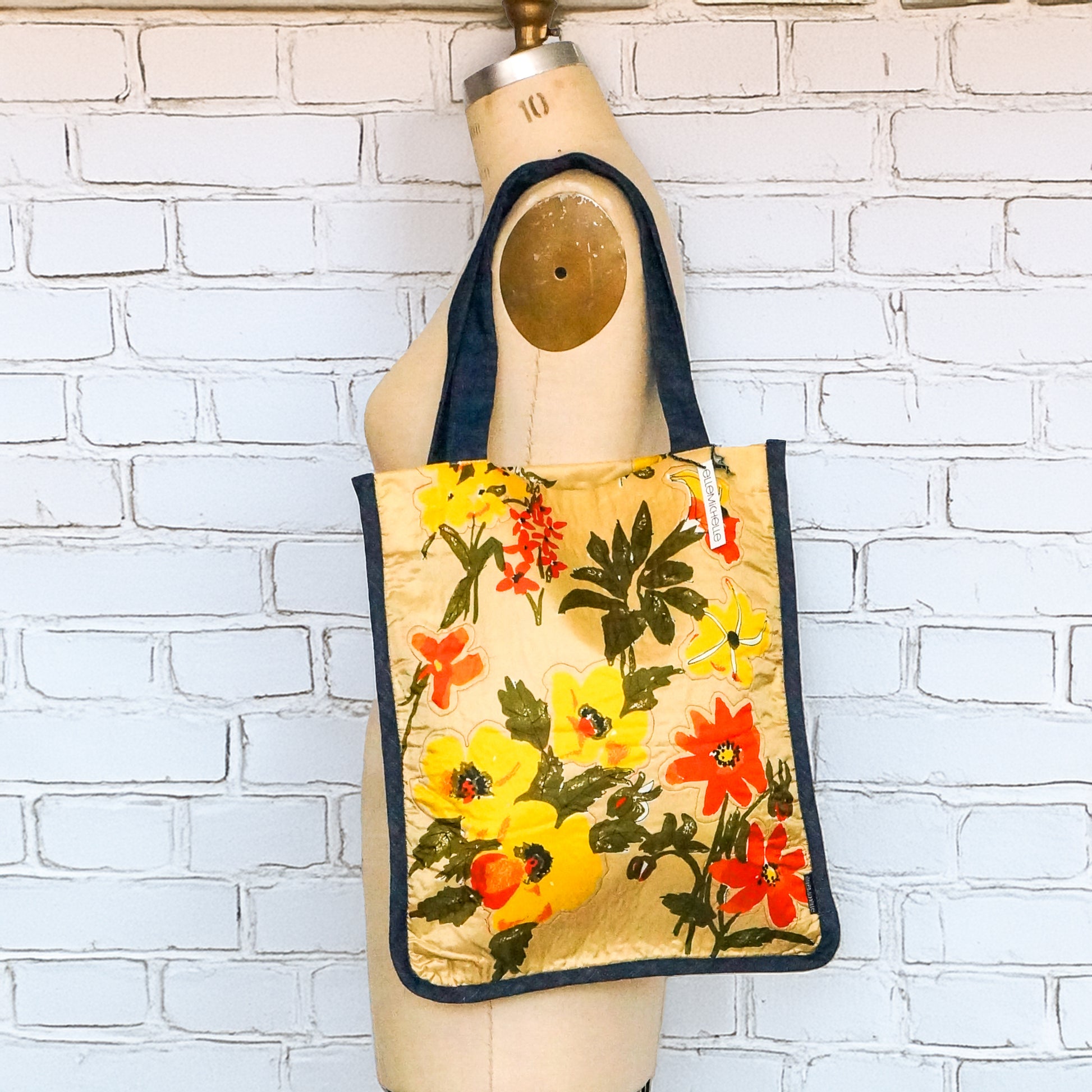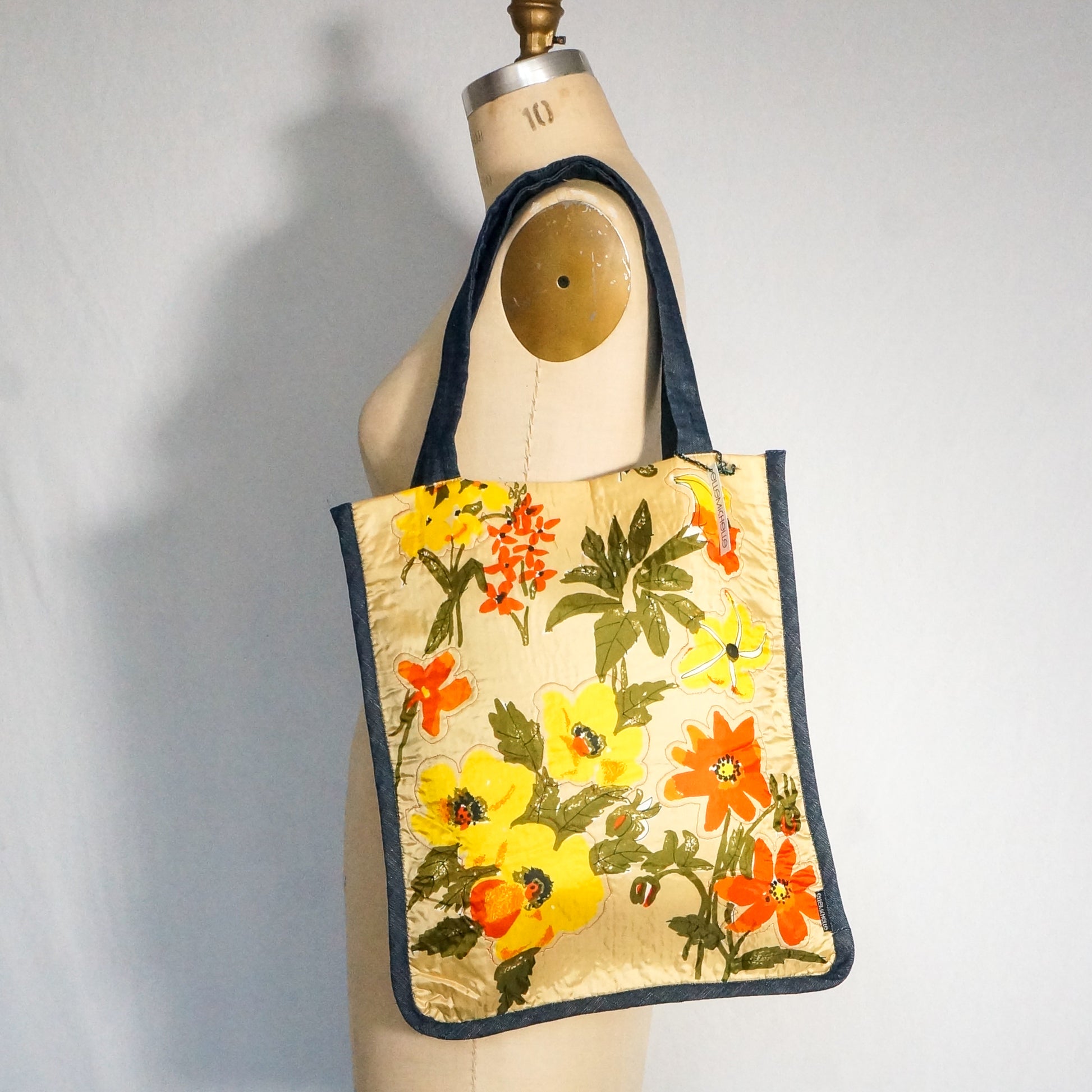 Vintage Scarf Bag Yellow Floral Print | Market Tote Summer Handbag