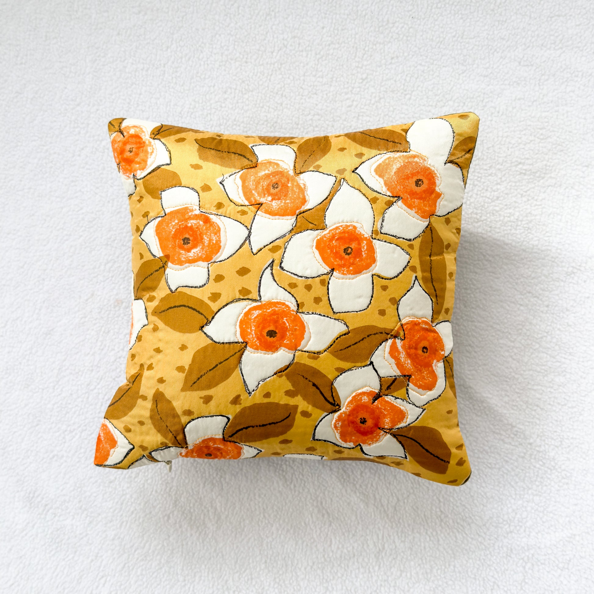 Yellow Floral Throw Pillow 10": Upcycled Retro Scarf Quilted Accent Cushion